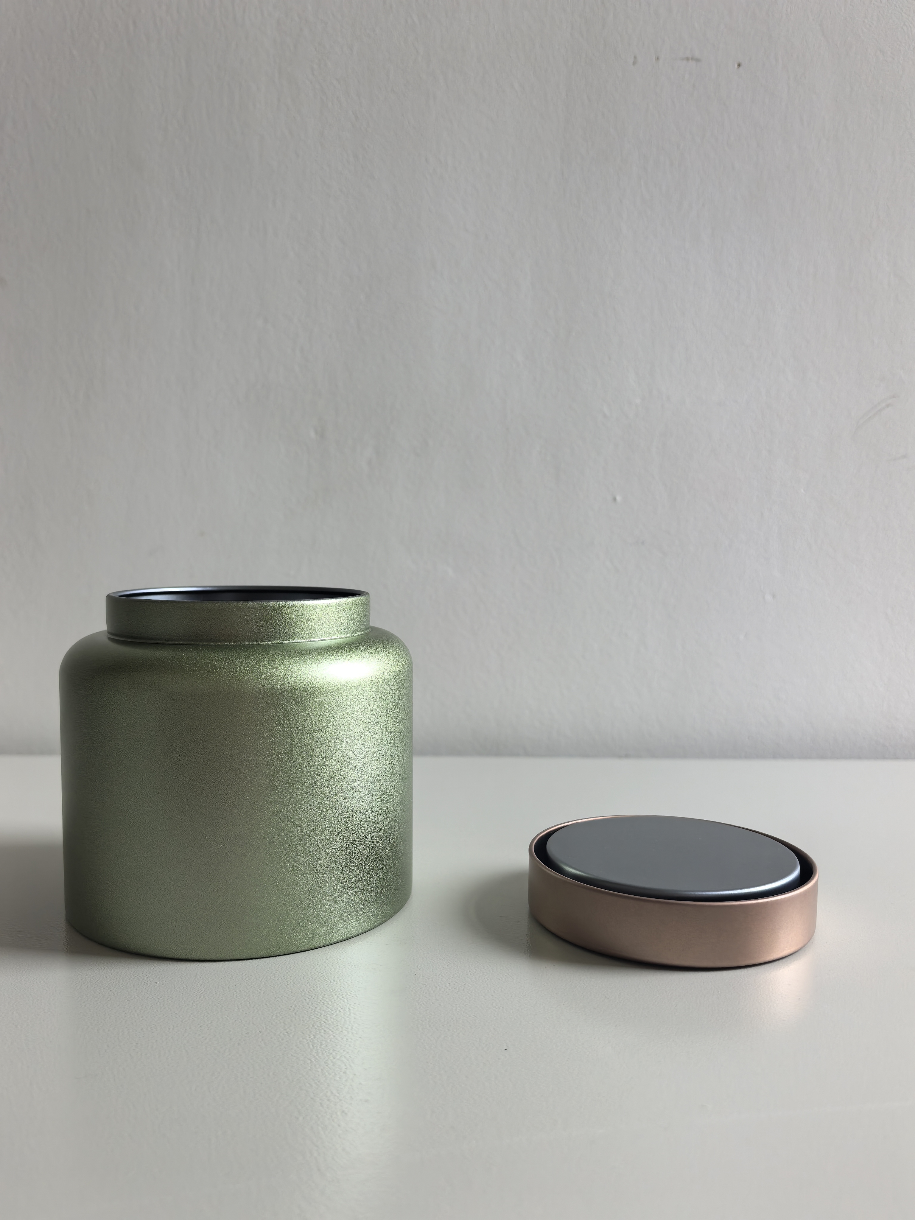 罐身采用柔和的绿色金属质感,搭配顶部铜色封盖,简约中透着雅致,为宠物的安息之所赋予独特的美感。无论是摆放在家中的静谧角落,还是与其他纪念物相伴,都能自然融入空间,成为温暖的情感寄托。